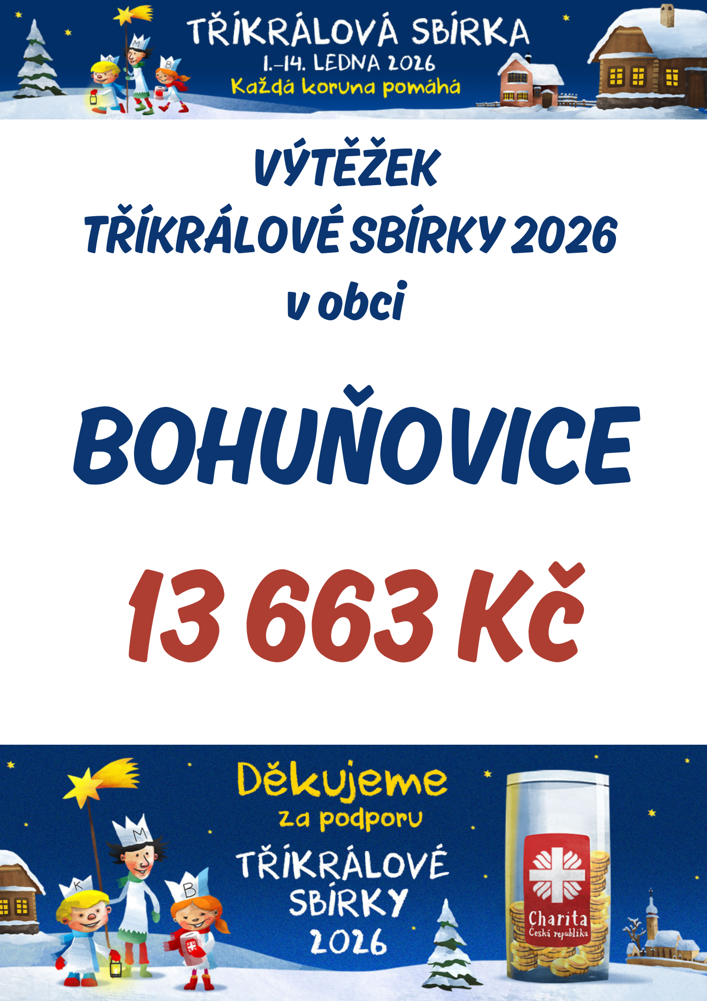 Při Tříkrálové sbírce se letos v naší obci vybralo 13.663,-Kč.